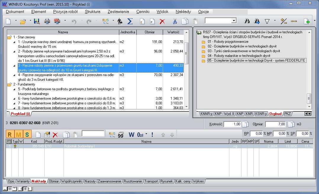 Funkcje i możliwości programu kosztorysowego WINBUD Kosztorys Prof to między innymi: